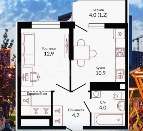 | Площадь кухни, кв.м. | 12 |