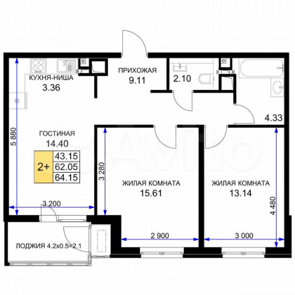 | Площадь, кв.м. | 64 |