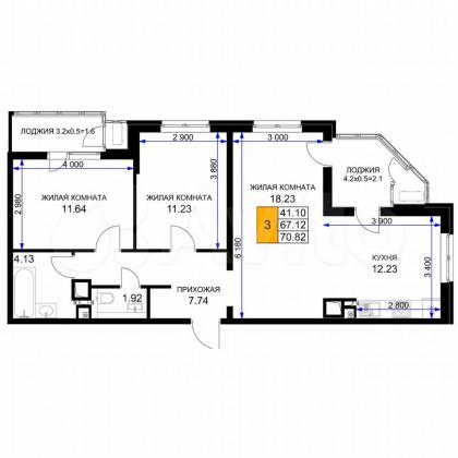 В избранное 3-к. квартира, 70,8 м², 7/16 эт.