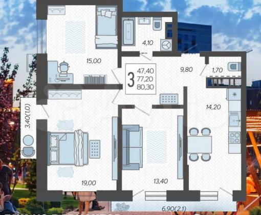 В избранное 3-к. квартира, 80,6 м², 6/12 эт.